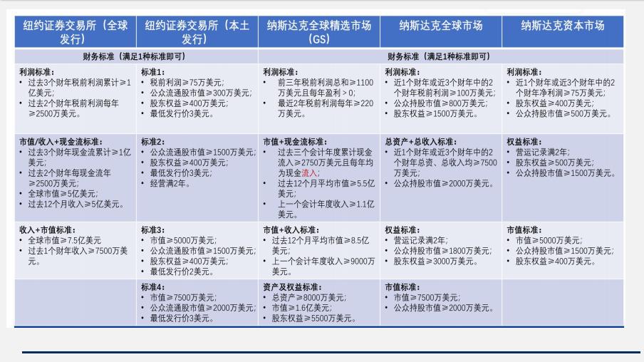 美国上市的“游戏规则”比较灵活,只要企业符合各交易所对利润标准、权益标准或市值标准等标准之一即可,不一定必需需要盈利。且赴美上市成本低于港股上市。